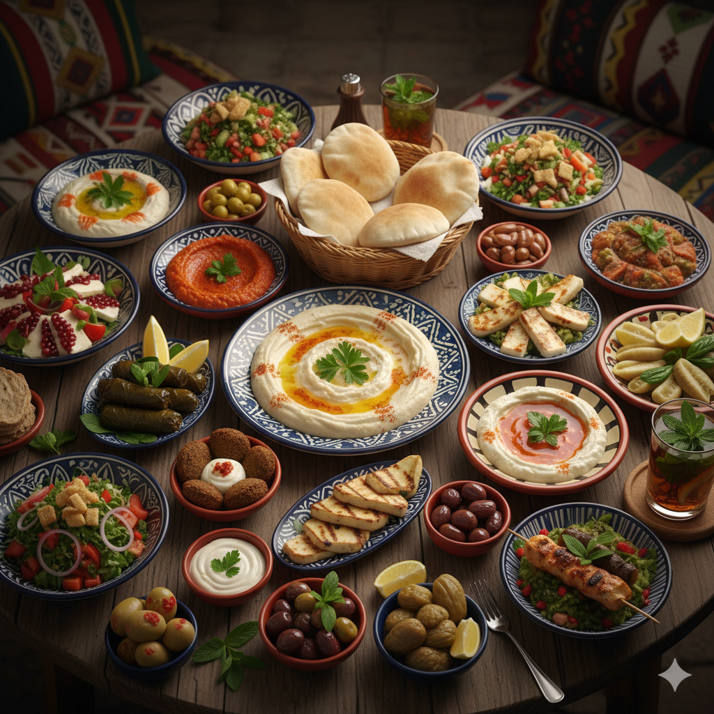 Sharing mezze is part of Jordan’s social rhythm—conversations flow, plates keep arriving, and meals stretch for hours.
